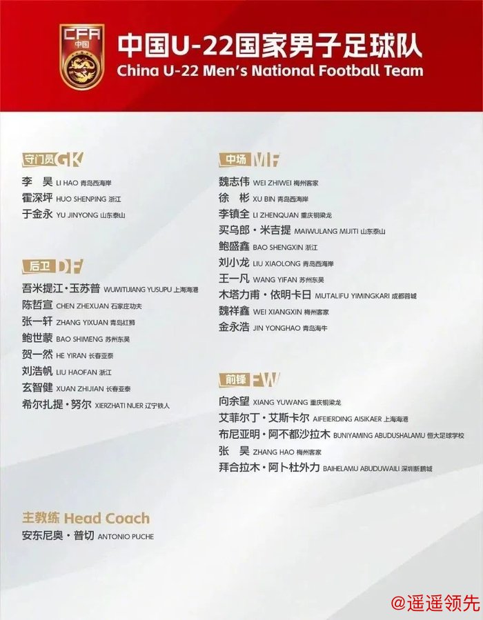 当收到自己入选U22国家队这个消息时,17岁的布尼亚明有点不敢相信,“很惊喜,我根本没有想到自己能入选U22国家队。”对于接下来的期待,布尼亚明说,“我希望在队里学习到更多的东西,也希望留在U22国家队当中,为球队做出贡献。”