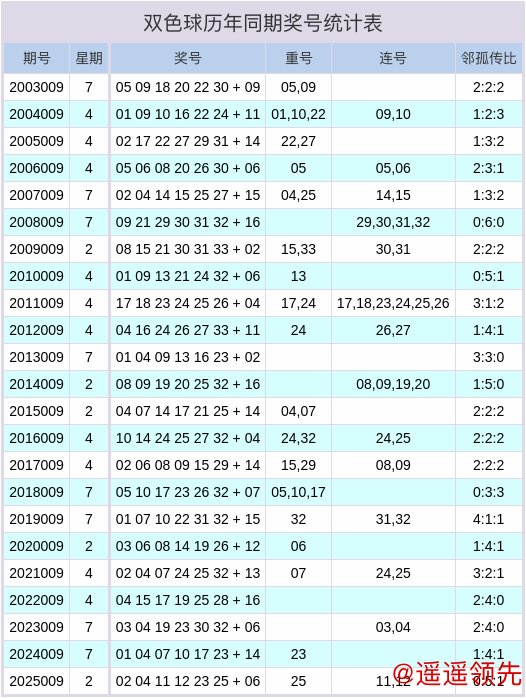 双色球历史同期奖号数据表