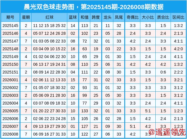 质合走势分析:上期质合比开出1:5,星空体育下载近5期质合比为1:5、3:3、2:4、1:5、2:4;近15期质合比为29:61,合数号码走势较热。本期预计红球合数号码热开,红球质合比参考2:4,参考合数号码:04、22、25、30。